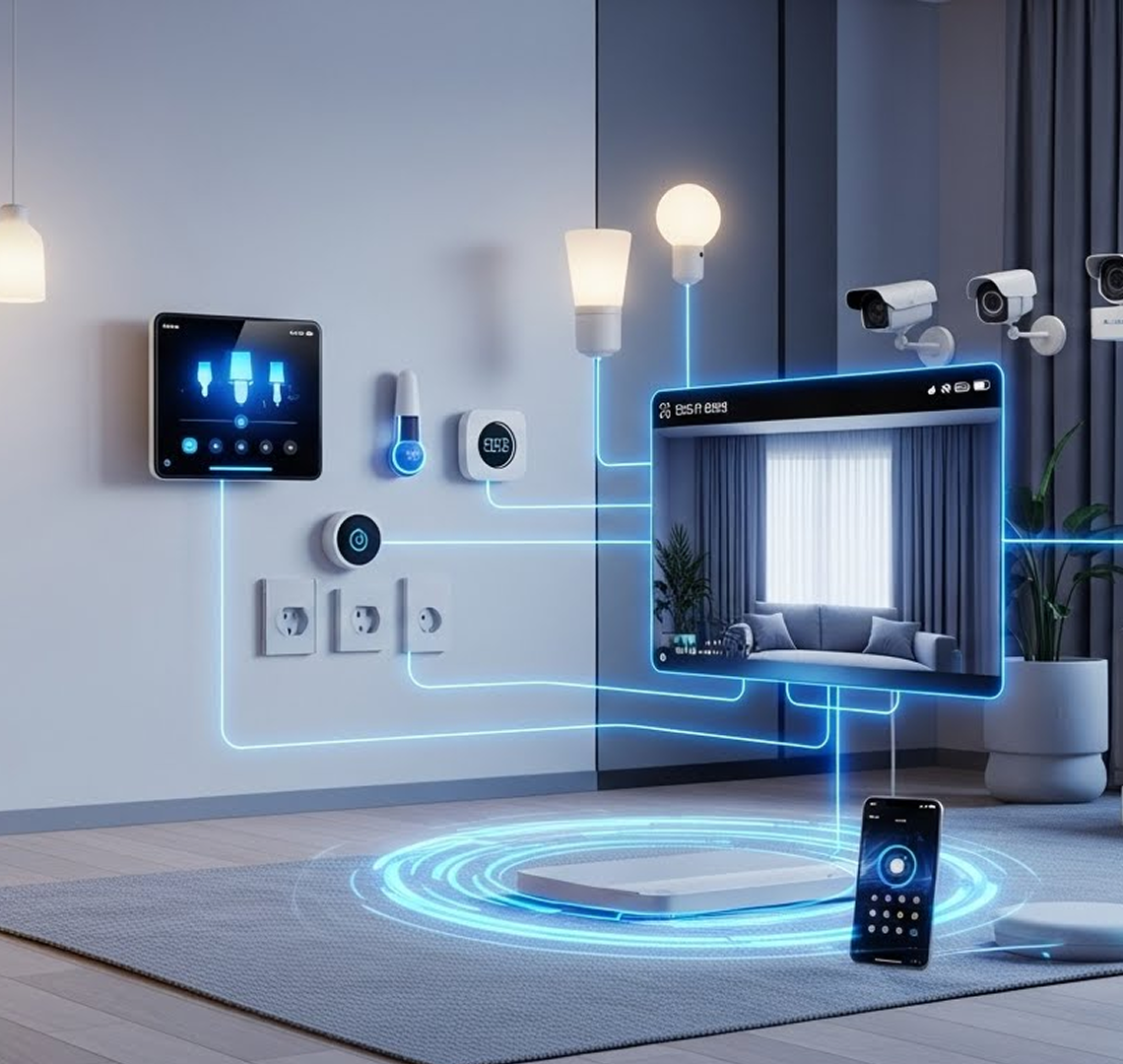 Akıllı ev otomasyon sistemleri, yaşam alanlarınızı daha konforlu, güvenli ve enerji verimli hale getiren modern teknolojilerdir. Aydınlatma, ısıtma-soğutma, güvenlik, perde, kamera ve elektronik cihazlar tek bir merkezden veya mobil uygulama üzerinden kolayca kontrol edilebilir.